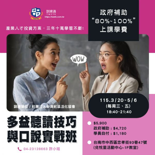 上課期間:2026/3/20 下午 06:40:00~2026/5/6 下午 09:40:00
