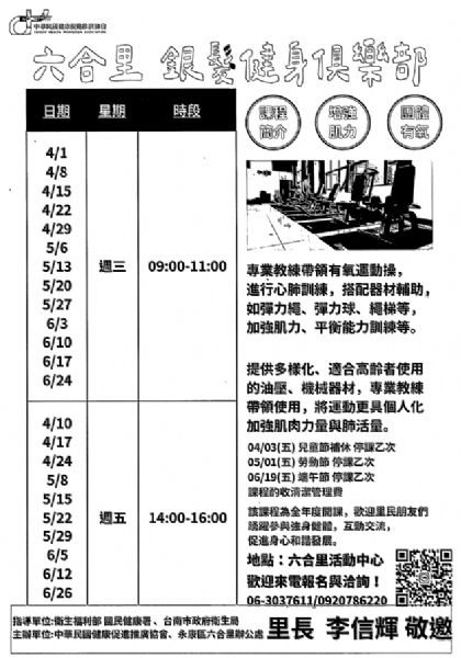 地點:六合里活動中心一樓禮堂。
